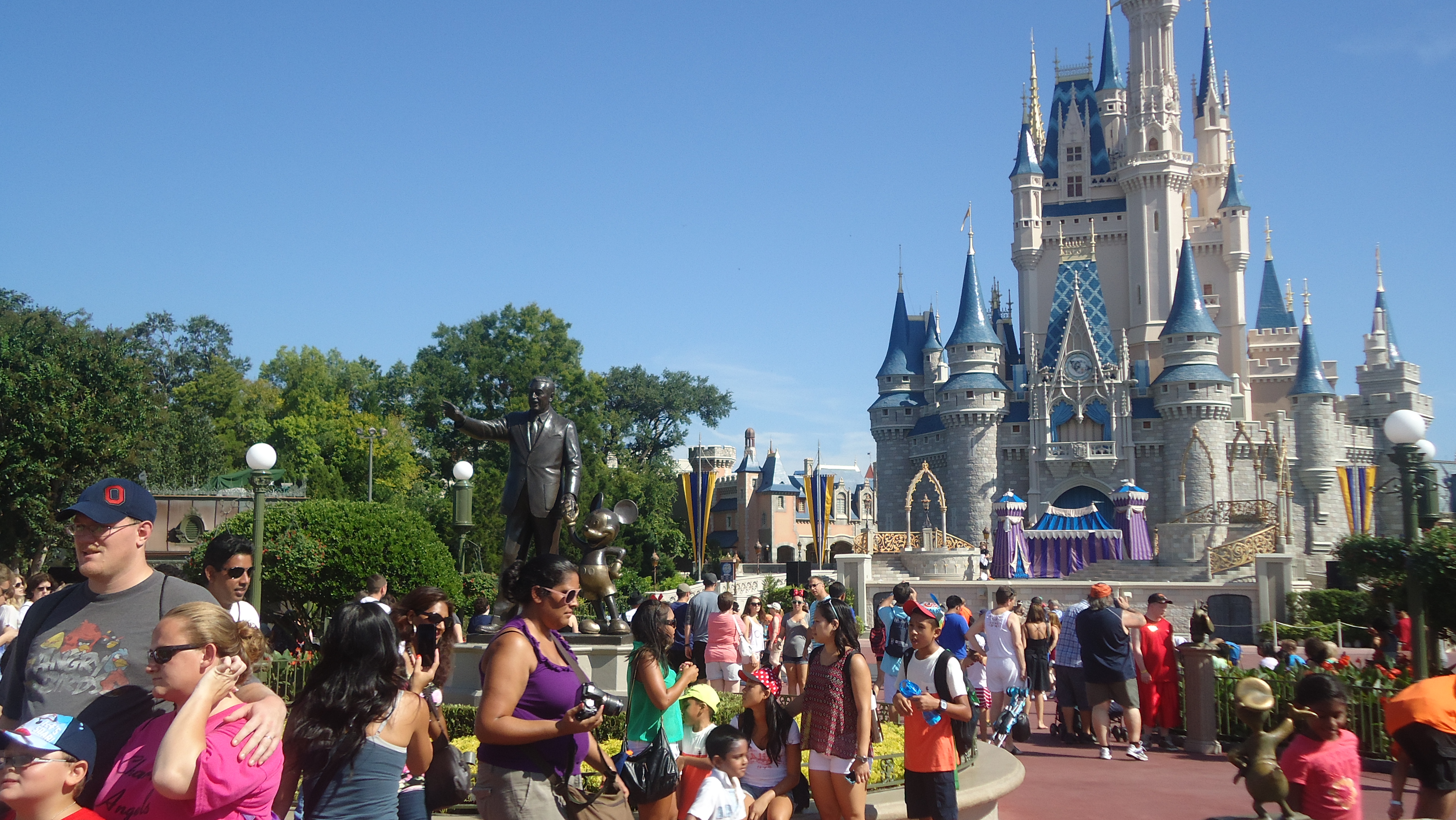 Disneyworld aabner kl. 09:00. Sammen med hvad der lignede resten af USAs befolkning myldrede vi i 4-5 vognbaner frem mod en af de mange indkoersler til Disneyworld. Tilkoerselsbanerne delte sig mod baade den ene og den anden temapark – vi havde kurs mod “Magic Kingdom”.